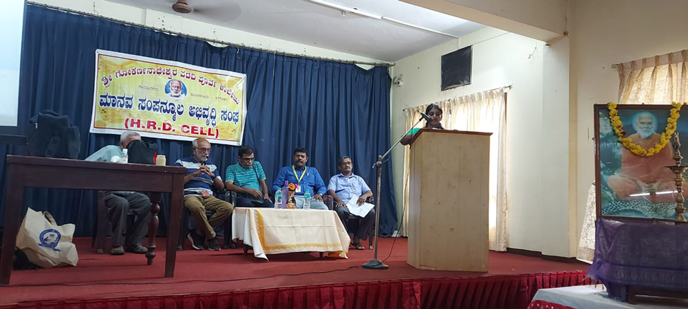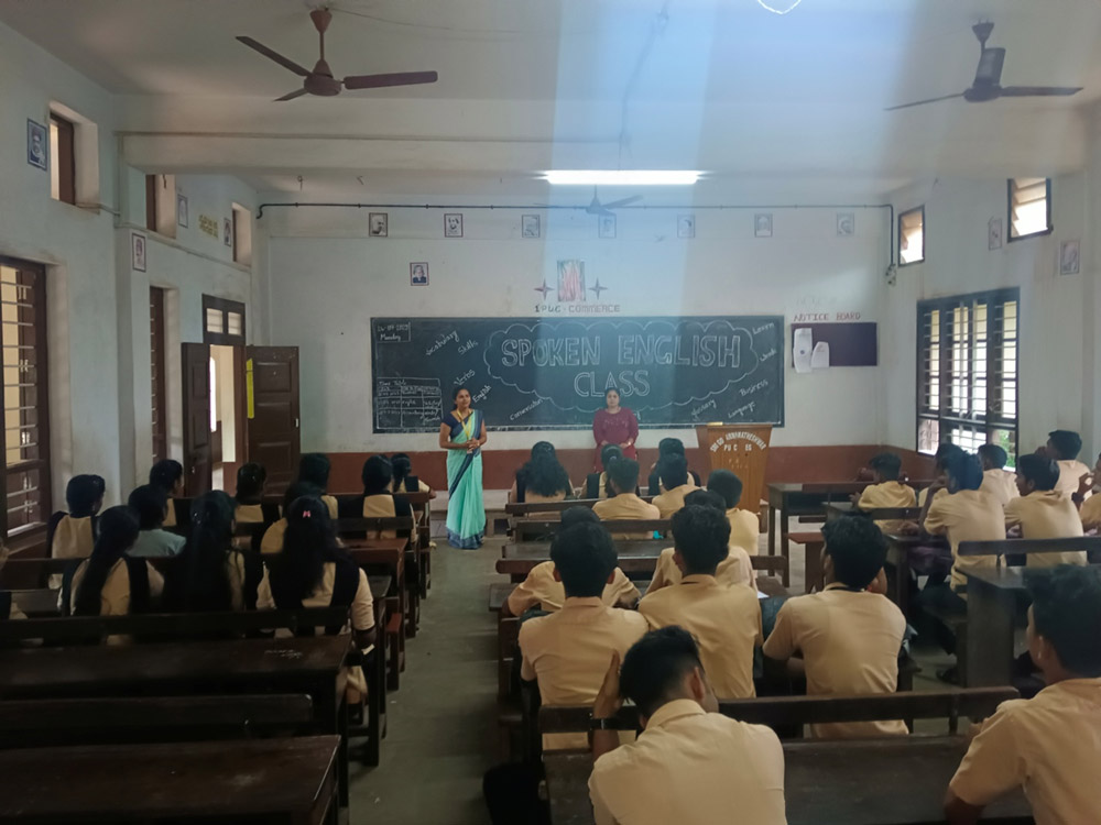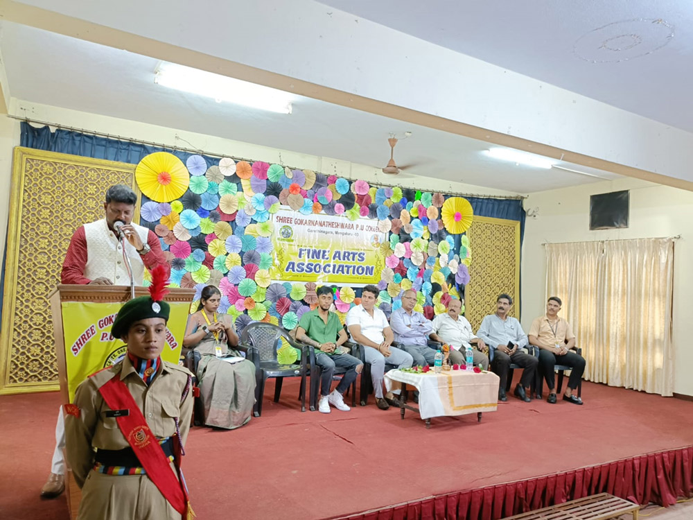Literature is the mirror of the society. It is the mixture of reality and imagination. The aim of teaching literature to the students is to imbibe human values, moral, ethics in the students. Literary Association includes languages- English, Hindi and Kannada. Literary Association is a platform for overall development; the aim is to develop multidimensional personality of the students. For that purpose the association organise, conduct many programmes- Experts Lecture, Elocution competition, Debate, Discussion, Seminar, etc. to give stage confidence to the students. The associations always encourage students to write and read. To evoke imagination in the students, teacher always inspire the students to write- Poem, article, joke, wallpaper, etc. The association display collected written material on the board of “Literary Association”; then every year Literary Association/ wall Magazine/ college magazine publish displayed student material in yearly college magazine “CHETHANA”. Literary Association is a small step of the language department to provide opportunity to students to develop, grow, and modify their qualities.