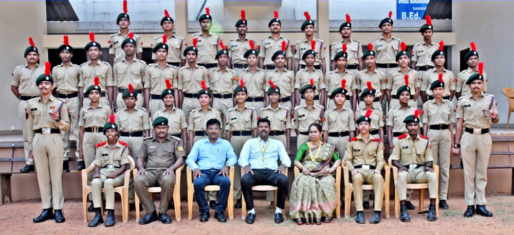 The NCC provides exposure to the cadets in a wide range of activities , with a distinct emphasis on Social Services, Discipline and Adventure Training. The NCC is open to all regular students on a voluntary basis.